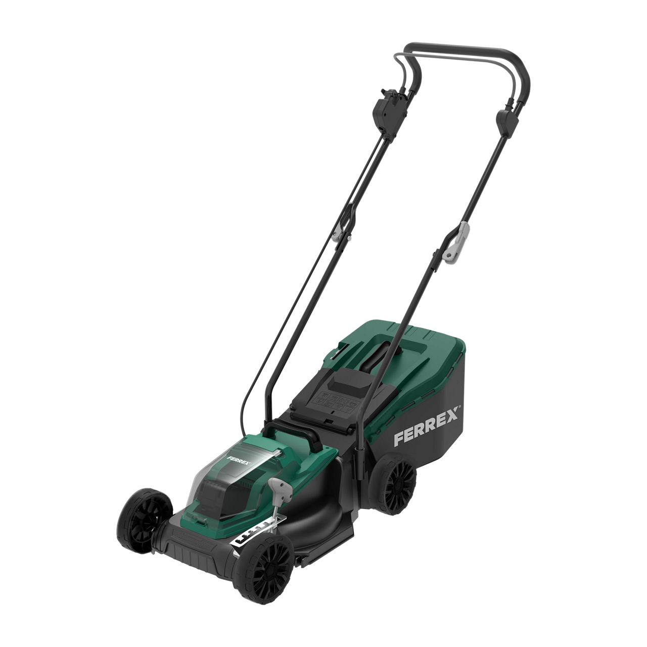 Modell FBT-CLM003; Leerlaufdrehzahl: 2.800 U/min.; Schnitthöhe einstellbar auf 6 Höhen: ca. 25–75 mm; Schnittbreite ca. 33 cm; inkl. Akku und Ladegerät