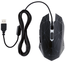 > Mit 7 automatisch wechselnden Lichtfarben > Tasten: Scrollrad, links, rechts, dpi > 2 Daumentasten (vor/zurück) > 1200/1800/2400/3600 dpi > USB-A-Anschluss | je