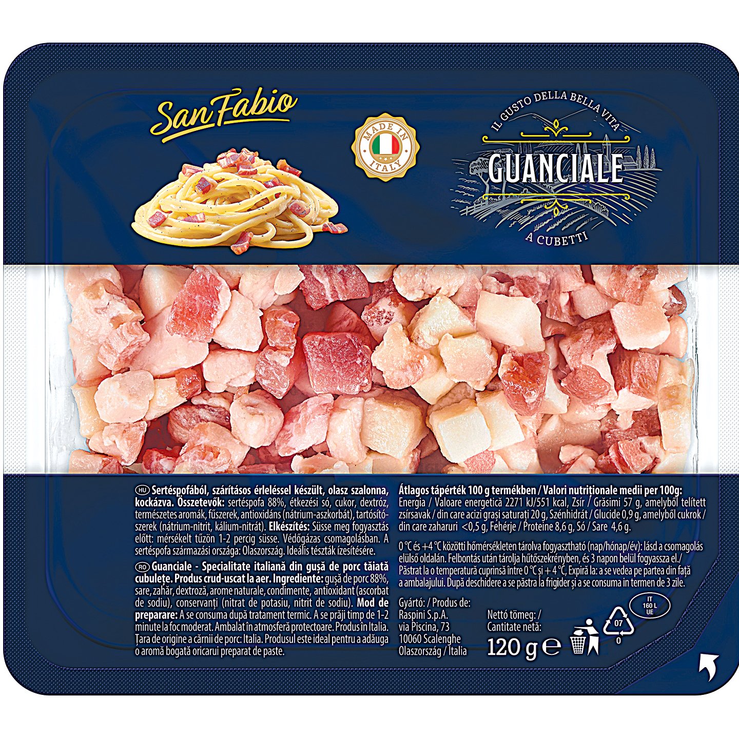 San Fabio Guanciale Kockázott Szalonna